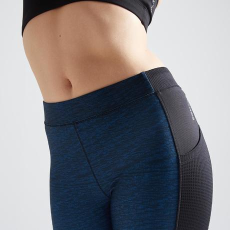 7/8-legging voor cardiofitness dames 120 blauw met print