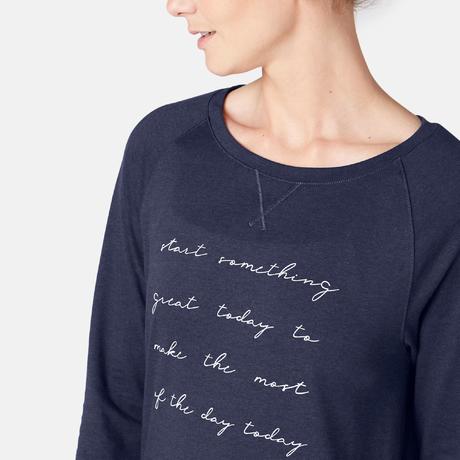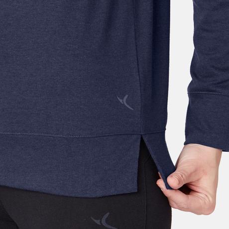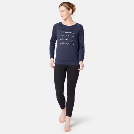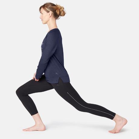 Damesshirt 500 met lange mouwen voor pilates/lichte gym marineblauw met print