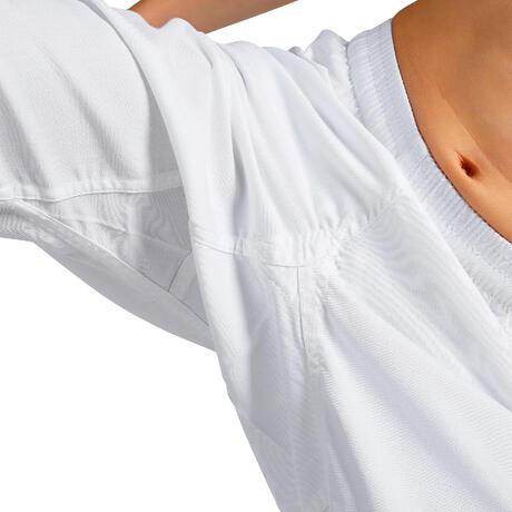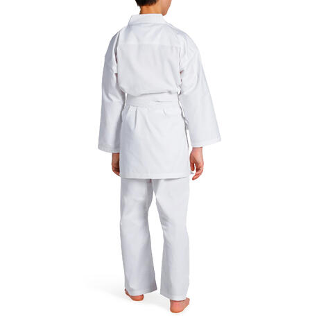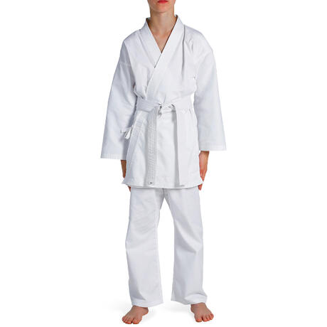 Met dit soepele en stevige karatepak krijgen jonge karateka's de basis van deze vechtkunst onder de knie. Verstevigingen aan de voornaamste trekzones. Geleverd met een witte band.