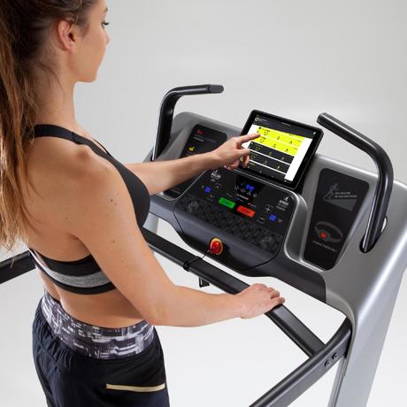 Voor een nog rijkere ervaring en om je sessies te bewaren, kun je de loopband koppelen aan de app Domyos E Connected.