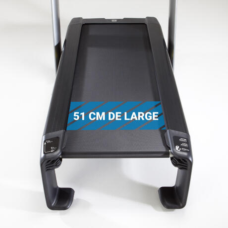 Utilisé pour mes entraînements trails les jours où je n'ai pas la possibilité de sortir en extérieur. La simulation de dénivelé est un vrai plus. Le tapis est fiable, peu bruyant, souple à l'impact. Un vrai plaisir !