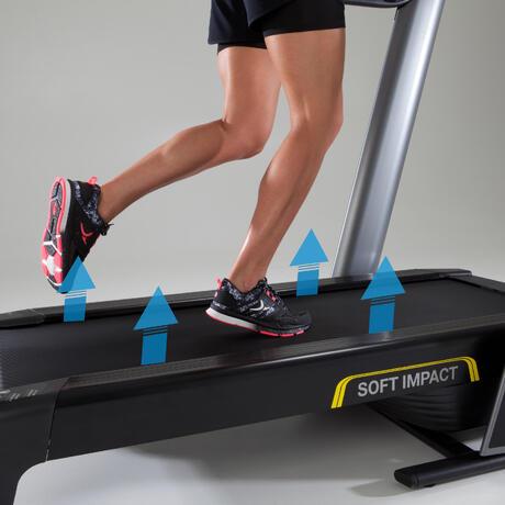 Het dempingsysteem van de CLIMB by Domyos werd bestudeerd om een goede afzet en loopdynamiek te bieden. Lopen op een loopband is minder belastend voor je gewrichten dan buiten op een harde ondergrond lopen.