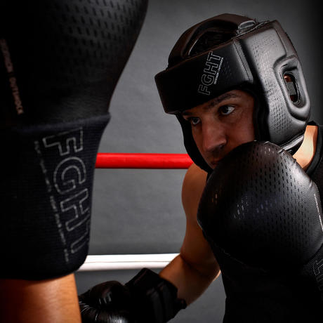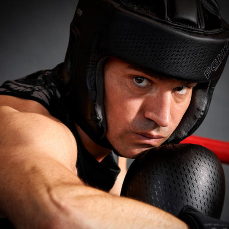 Dankzij de hoofdband in 360° en de bescherming aan de bovenkant van het hoofd, is deze hoofdbeschermer ideaal voor al je (thai)boksgevechten. Hij werd getest in het lab en hij heeft een gelijkmatige schuimlaag om de schokken te absorberen van krachtige stoten (voeten, vuisten, ellebogen) van een gevorderde tegenstander. Hij beschermt je gezicht, van je kaak tot aan je oren. Deze laatste zijn trouwens extra beschermd met een kussentje om elk zuignapeffect te vermijden.