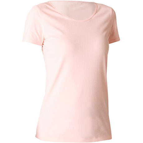 T-shirt voor pilates en lichte gym dames 100 katoen roze