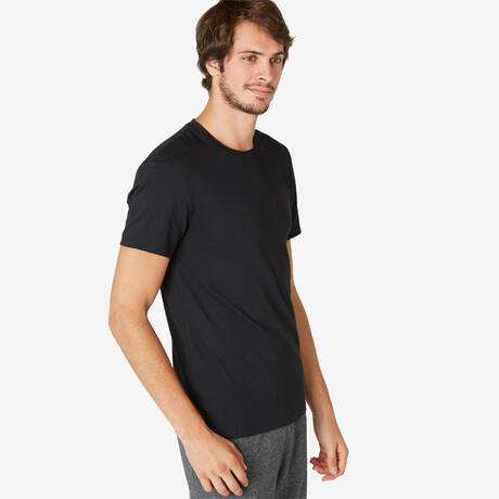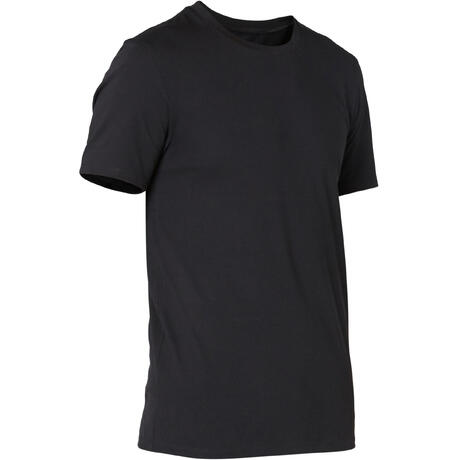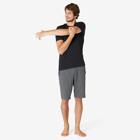 T-shirt voor pilates en lichte gym heren 500 slim fit zwart
