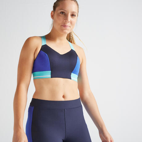Deze sportbeha 500, met GEMIDDELDE ONDERSTEUNING*, is geschikt voor fitnessactiviteiten met gemiddelde impact (dans-workouts, cardiotraining, crosstraining). De zachte en elastische bandjes, de luchtige cups en de elastische onderbusteband garanderen een heel goede ondersteuning en veel draagcomfort. * vermindert schokken met 45% t.o.v. een gewone beha bij activiteiten met MEDIUM IMPACT.