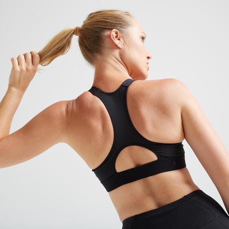 Het sporttopje 500, met GEMIDDELDE ONDERSTEUNING* is geschikt voor fitnessactiviteiten met gemiddelde impact (dans workouts, cardiotraining, crosstraining).